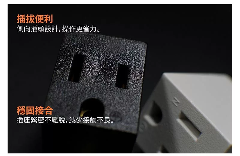 1.L型設計 避免電線彎折,有效節省直式插頭所佔空間。