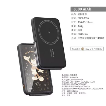 【Philips 飛利浦】10000mAh多功能十合一螢幕顯示行動電源 磁吸/自帶雙線/無線/手機支架 4色可選 (DLP4347C) 黑色 (DLP4347CB)