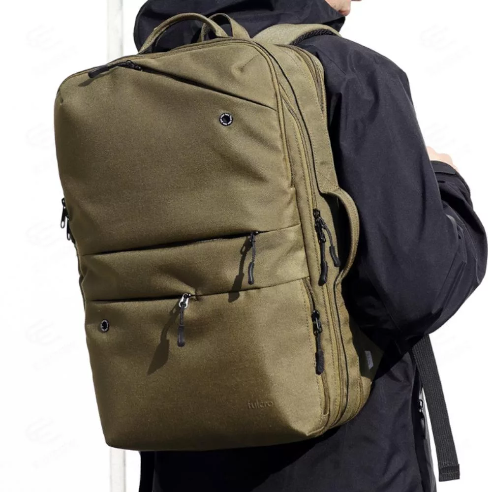 【Sayaka紗彌佳】買一送一! 買就送手拿包 極輕量0.3kg 都市漫步空氣感撞色抽繩 超輕量防潑 後背包 -卡其色
