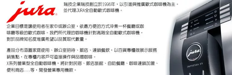 可設定花式咖啡品項31項、智慧型預熱功能、糖漿奶泡、咖啡推薦、JURA 顯示幕顯示保養狀態、WiFi連接。