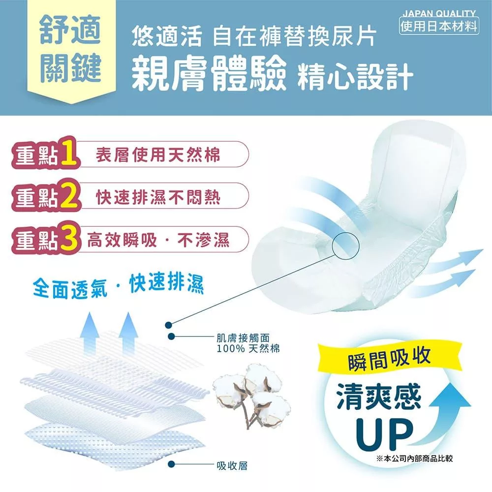 悠適活 日本製成人黏貼式尿布替換片6回吸收1000cc(30片/包*4包/共120片/箱)