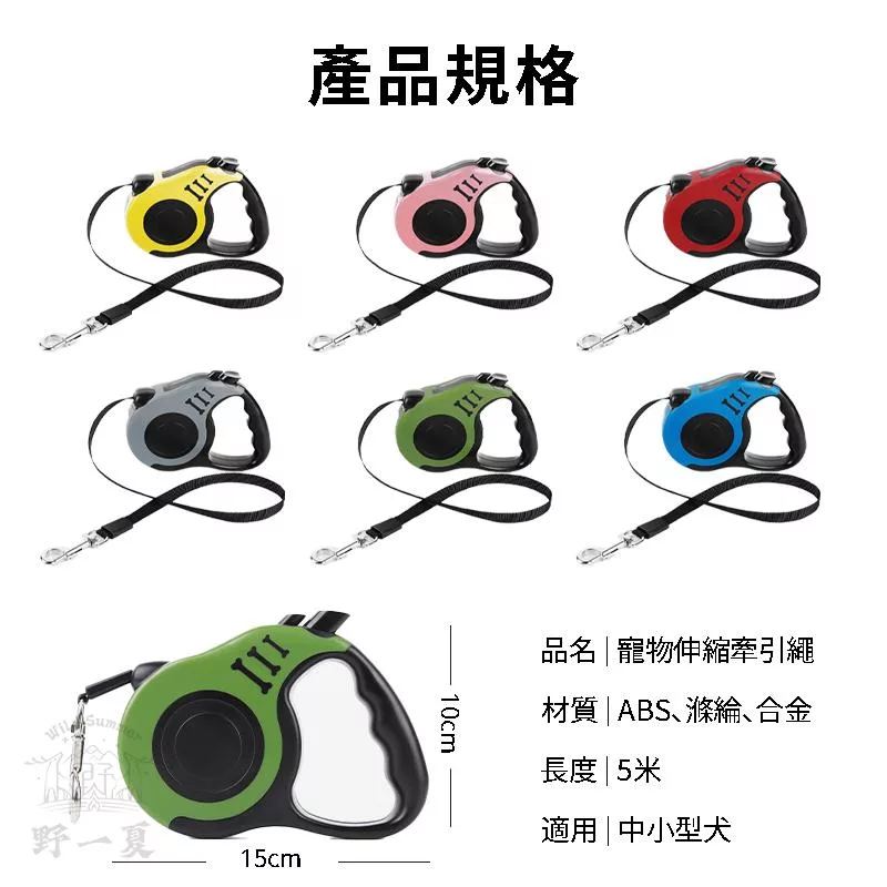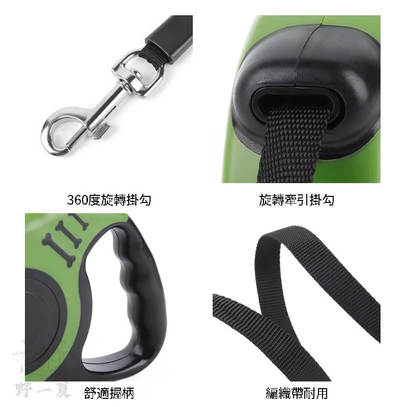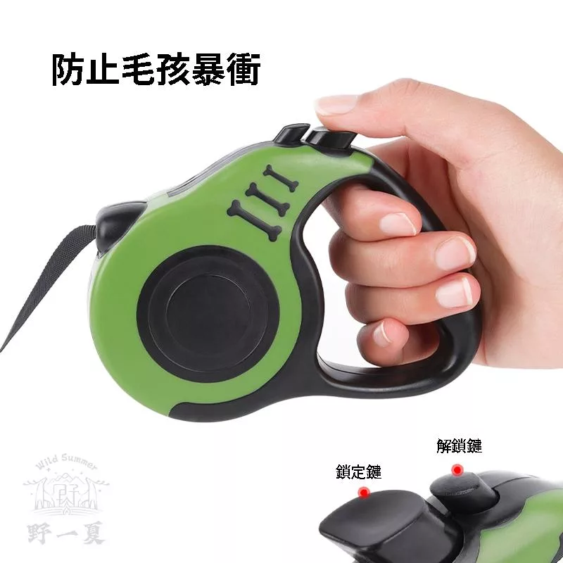 【野一夏】寵物自動伸縮牽引繩-5M 遛狗繩 伸縮牽引繩 寵物牽繩 拉繩牽引繩 散步牽繩 外出牽繩 -綠色