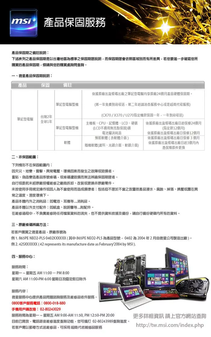 家電或3C商品涉及技術及專業,其保固及維修相關事宜仍應由該商品之原廠、代理商、製造商等進行專業之處置。若商品有保固及維修之需求,請依循原廠、代理商、製造商揭示之相應規範及流程處置,並配合提供產品序號和購買證明後依其指示進行。以商品瑕疵為由退換貨者,可代為受理將商品送原廠或代理商檢測(一般處理時間需2~3週,實際依各該品牌規範為準),若經檢測非商品本身瑕疵,恐無法退換貨。APPLE系列商品請見 APPLE系列說明。