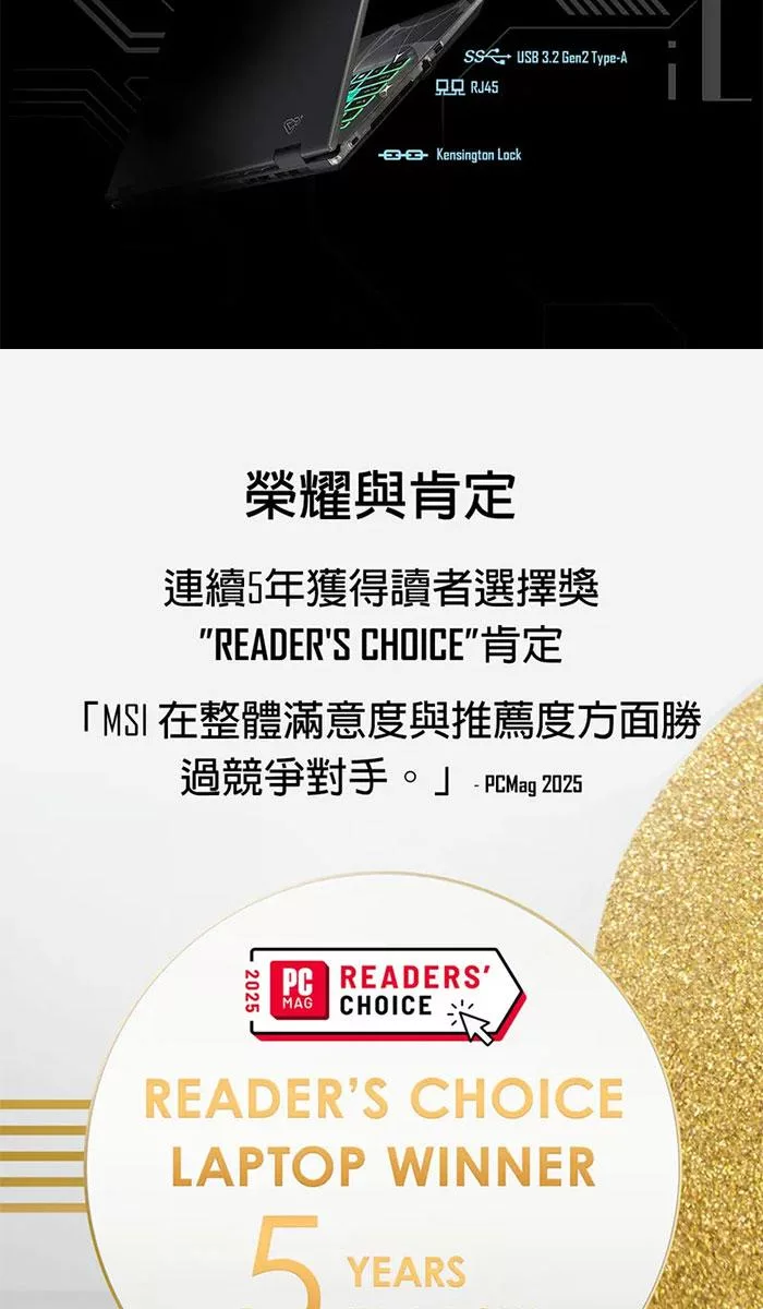 msi微星 Cyborg 15 B2RWEKG-892TW 15.6吋 電競筆電 (Core 5-210H/16G/512G SSD/RTX5050-8G/Win11)