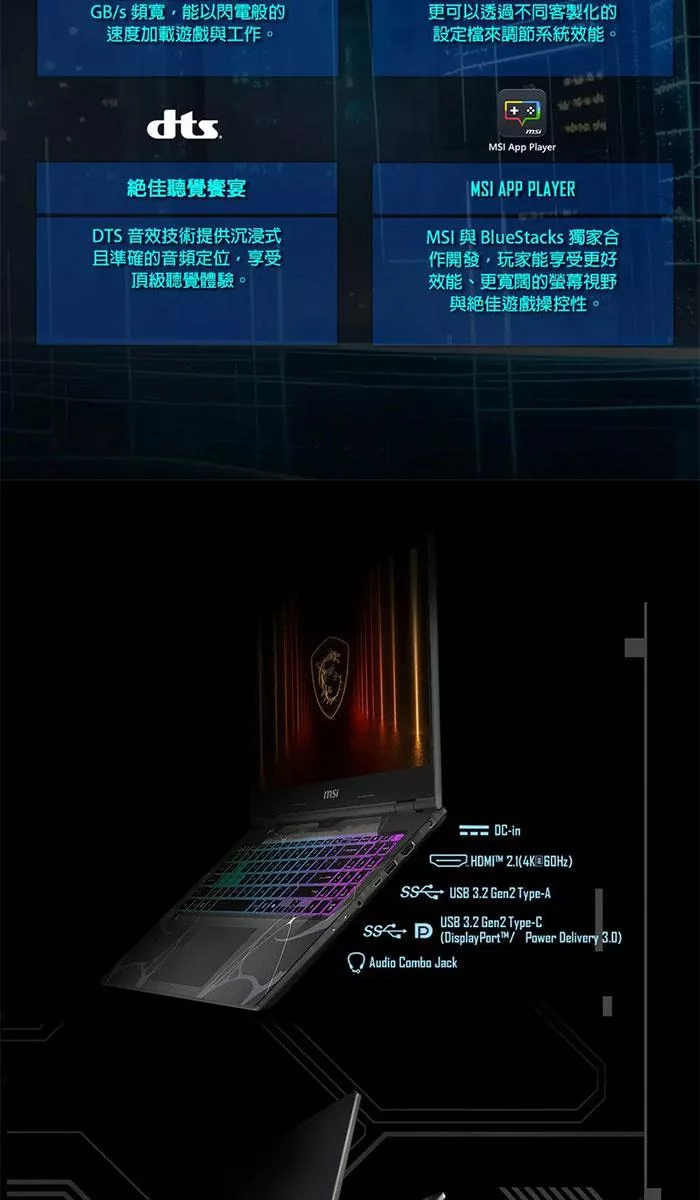 msi微星 Cyborg 15 A13VE-1868TW 15.6吋 電競筆電 (i5-13420H/16G/512G SSD/RTX4050-6G/Win11Pro)