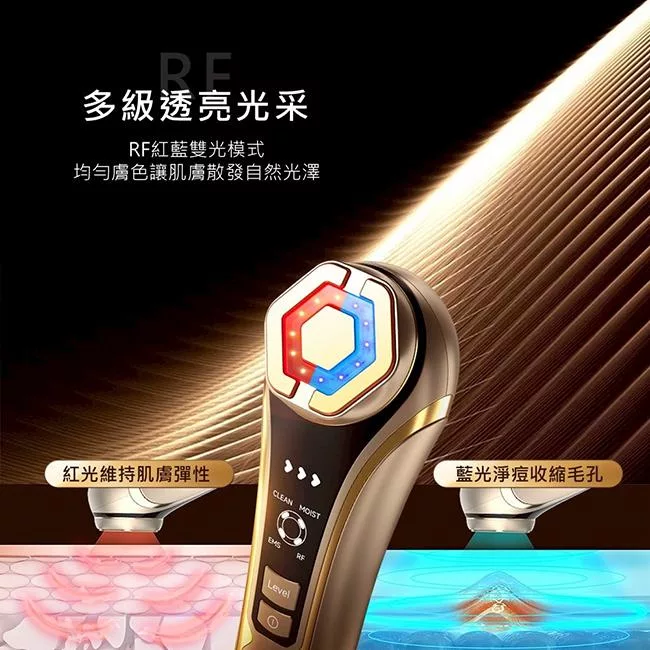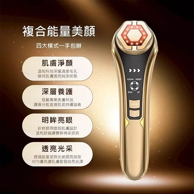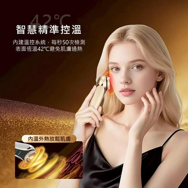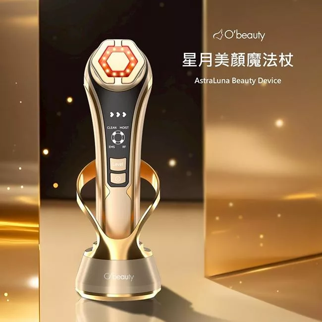 【Obeauty 奧緹】星月美顏魔法杖-複合能量美顏儀-高效滲透熱敷導入儀-舒緩眼部疲勞-臉部按摩(UFS-178) 金色