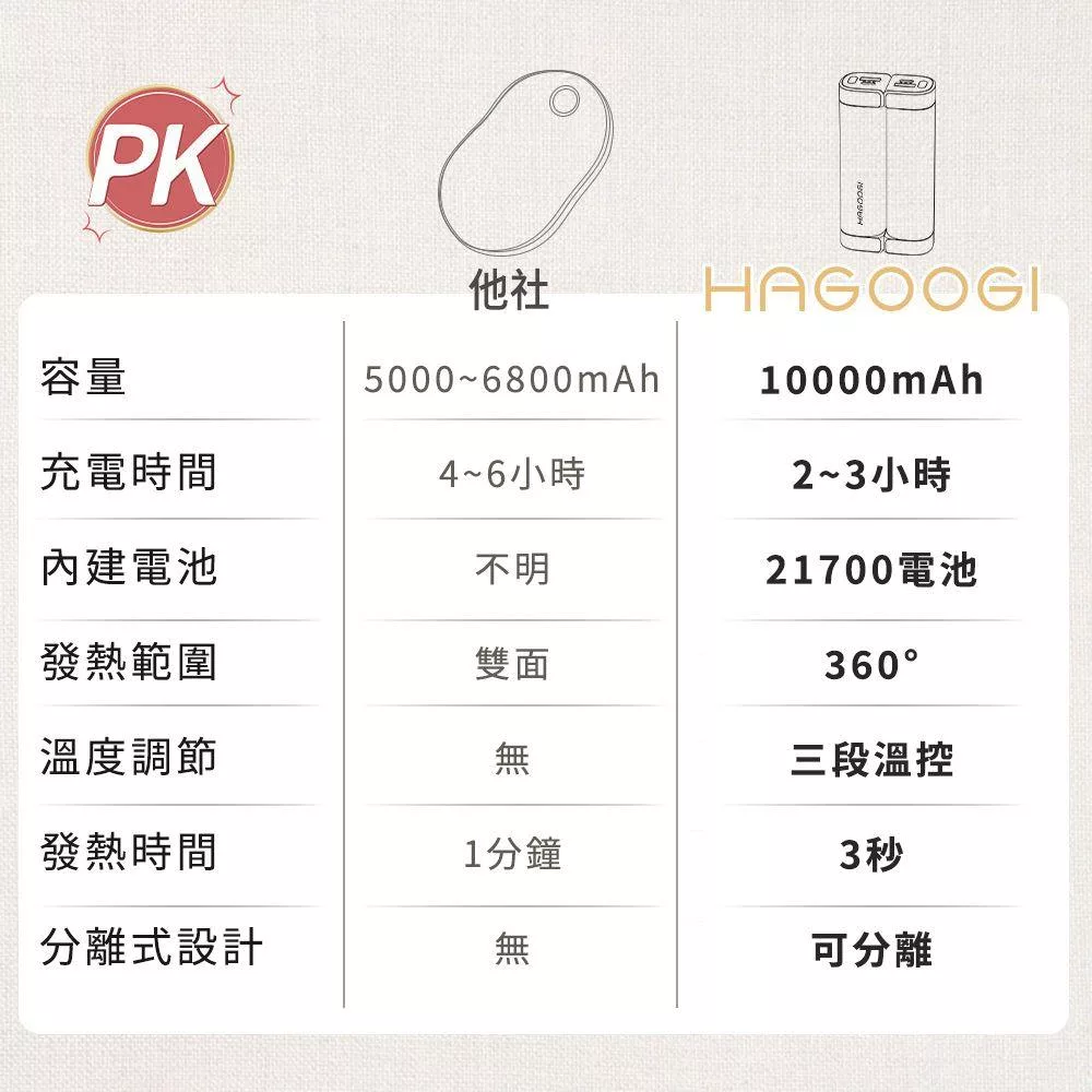 ✅10000mAh大容量,暖手+充手機都夠用