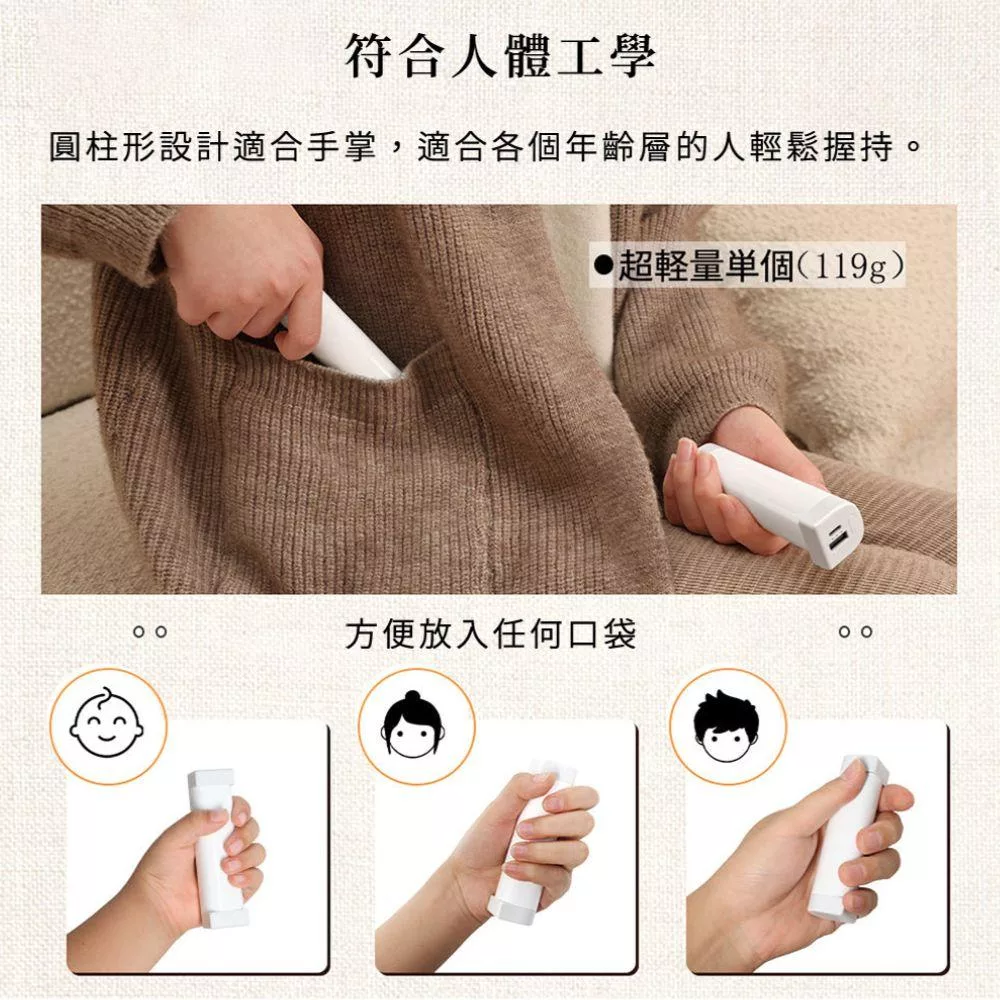 ✅輕巧圓柱握感貼手,單顆僅119g