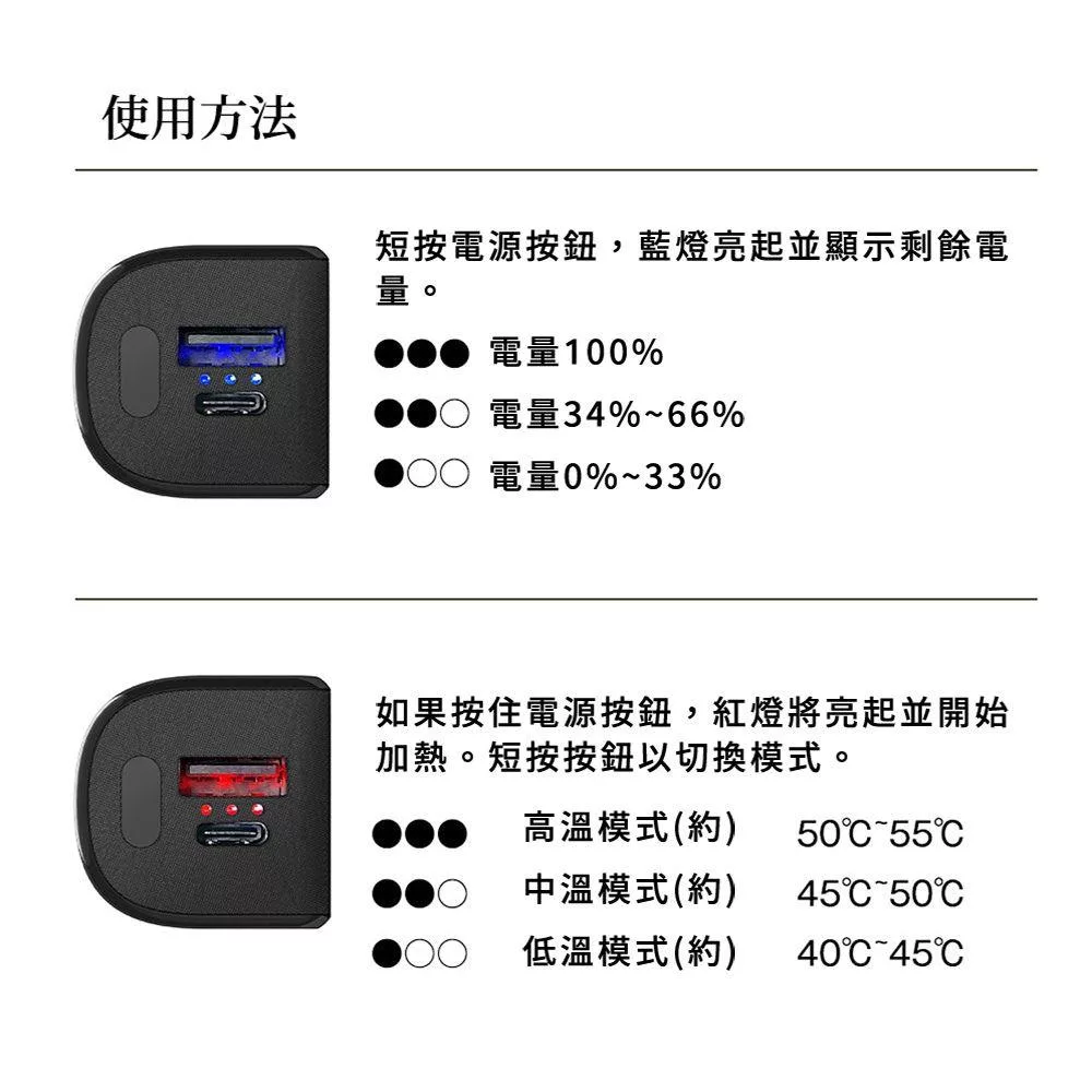 溫控模式:低溫40–45°C / 中溫45–50°C / 高溫50–55°C
