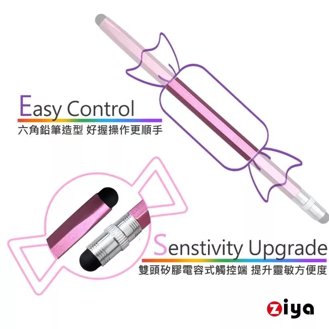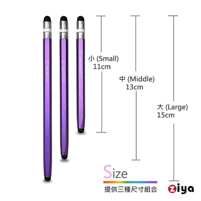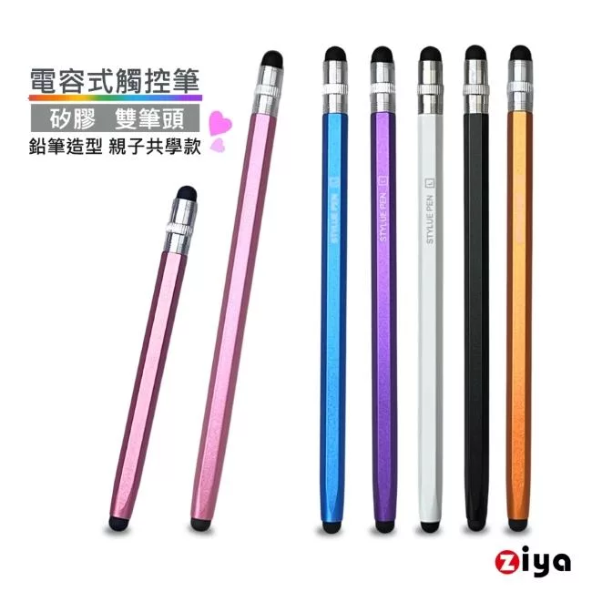 [ZIYA] 電容式觸控筆 鋁合金筆身 矽膠双筆頭 鉛筆造型 親子共學款 (中+小 共2入) 經典黑