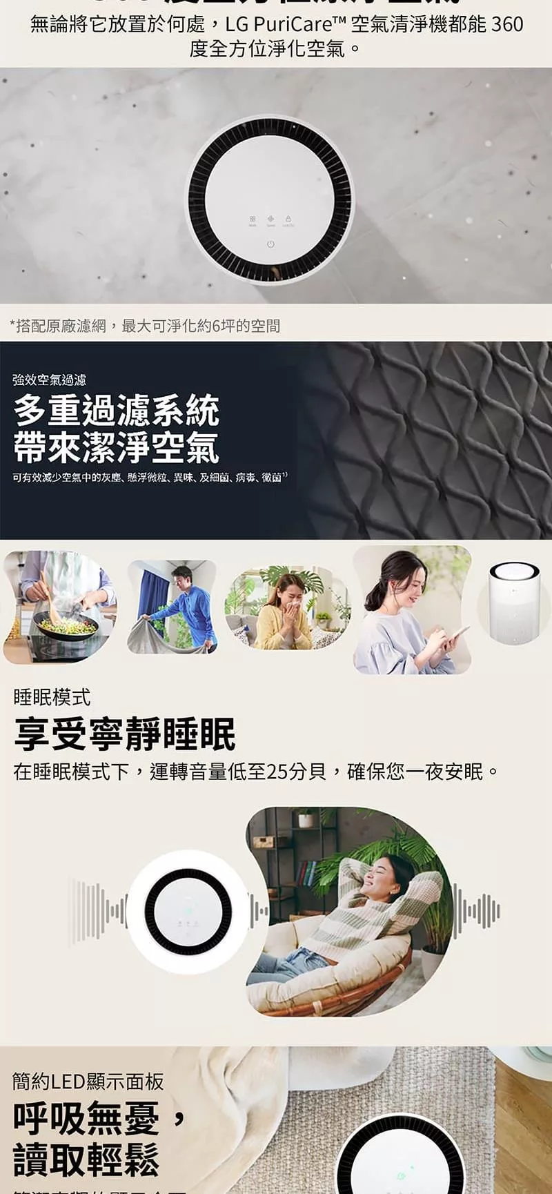 LG樂金 PuriCare 360°空氣清淨機 寵物功能增加版二代 AS651DBY0