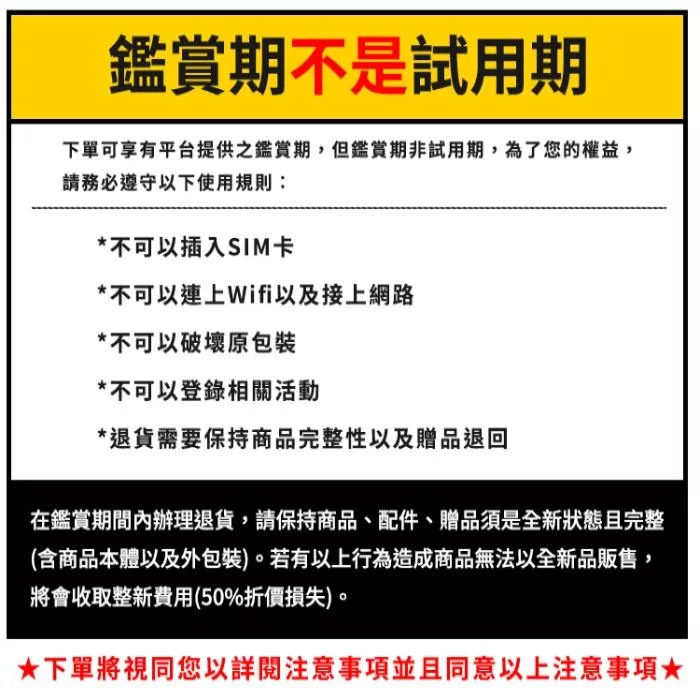 當您於此頁面下單表示您了解並同意下述規範,請注意!