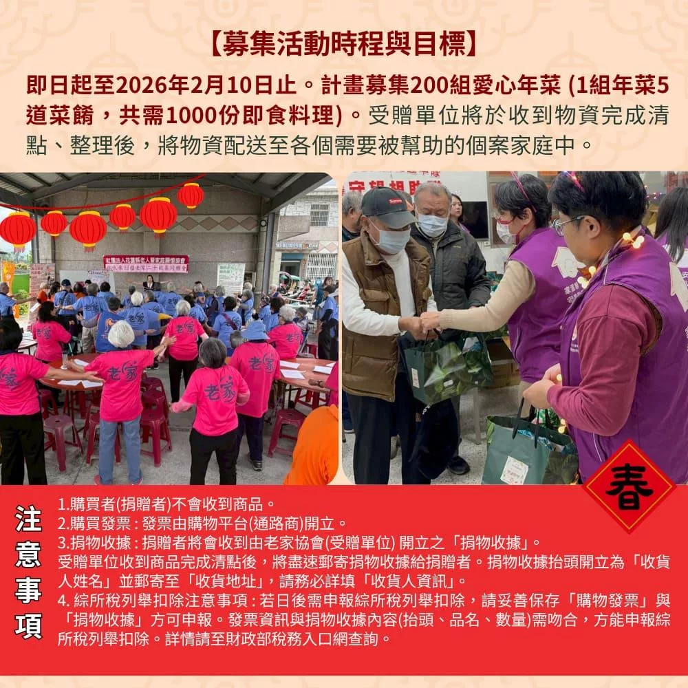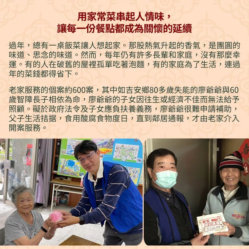 《老人福利關懷協會x娘家廚房》送愛募集-公益愛心年菜募集(購買者不會收到商品)