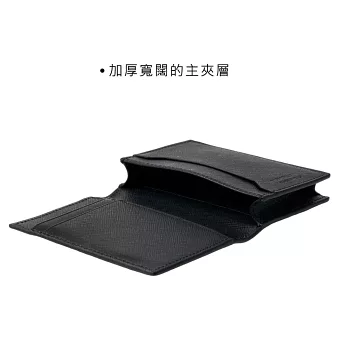 外觀雖輕薄,內部設計極為精準:配置 3 個信用卡夾層、1 個名片夾層與 1 個附加口袋;外層另設一個卡槽,可快速收納常用卡片。每個夾層皆採對稱結構,便於辨識與取用。