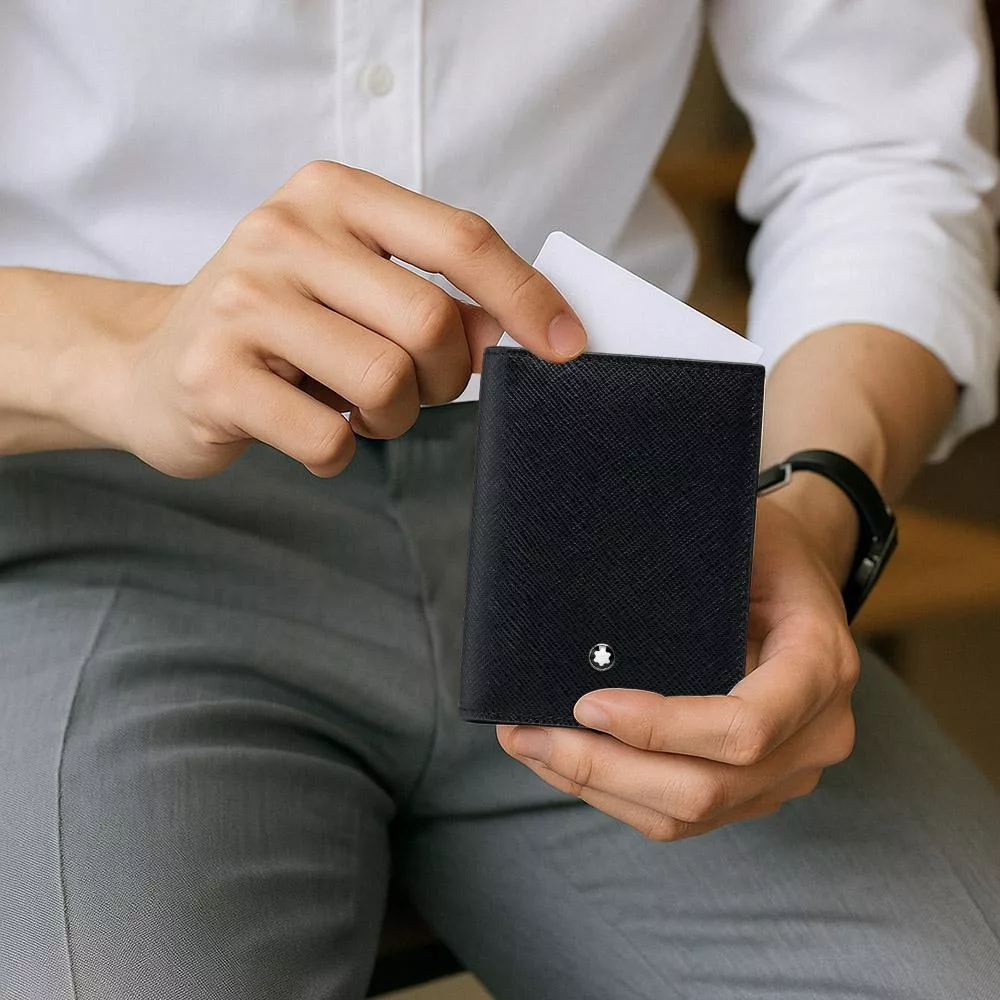 秉承 Montblanc 對工藝與功能的嚴苛追求,這款卡式卡夾隸屬於其高階皮革配件系列。採用品牌經典 Saffiano十字紋印花皮革,融合現代都會生活節奏與細膩風格,呈現低調卻不失品牌辨識度的質感。適合追求極致精簡、仍需承載日常多重卡片需求的專業人士。