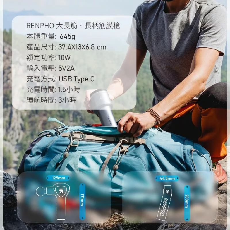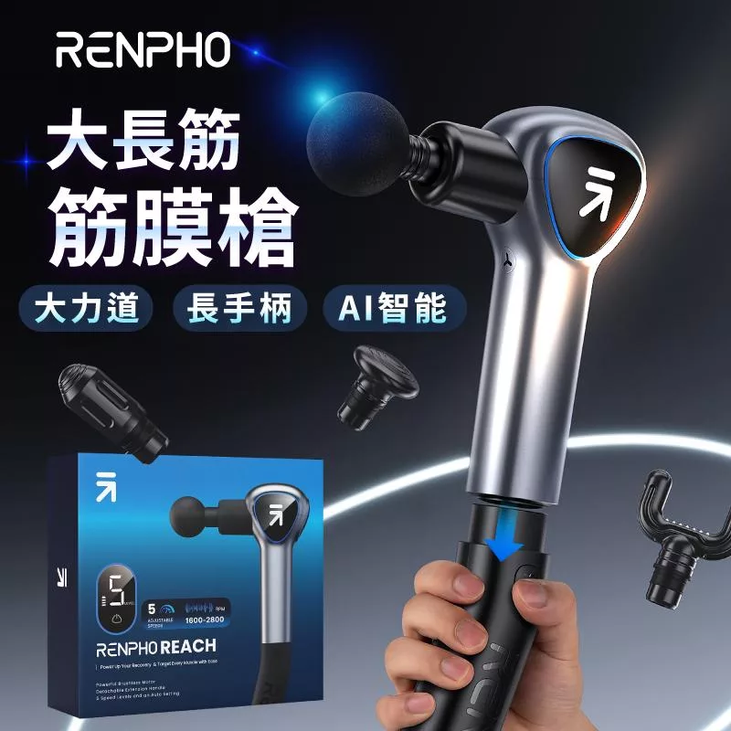 【Renpho】大長筋 • 長柄筋膜槍 美國按摩器銷售NO.1 銀色