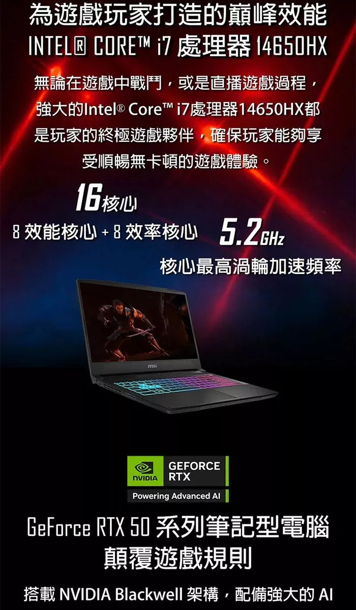 ★記憶體升級★msi微星 Katana 15 HX B14WEK-803TW 15.6吋(i7-14700HX/16G+8G/1T SSD/RTX5050/W11)