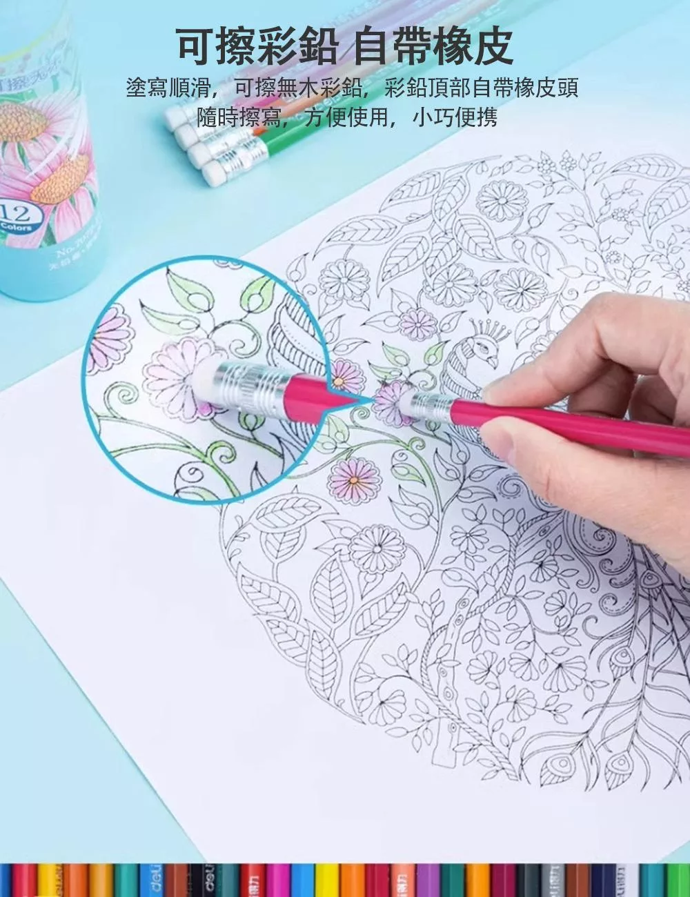 内含物:秘密花園套裝(塗色本+視頻教程+橡皮+捲筆刀+高光筆+圖書本+秘密花園+延長器)+桶裝彩鉛