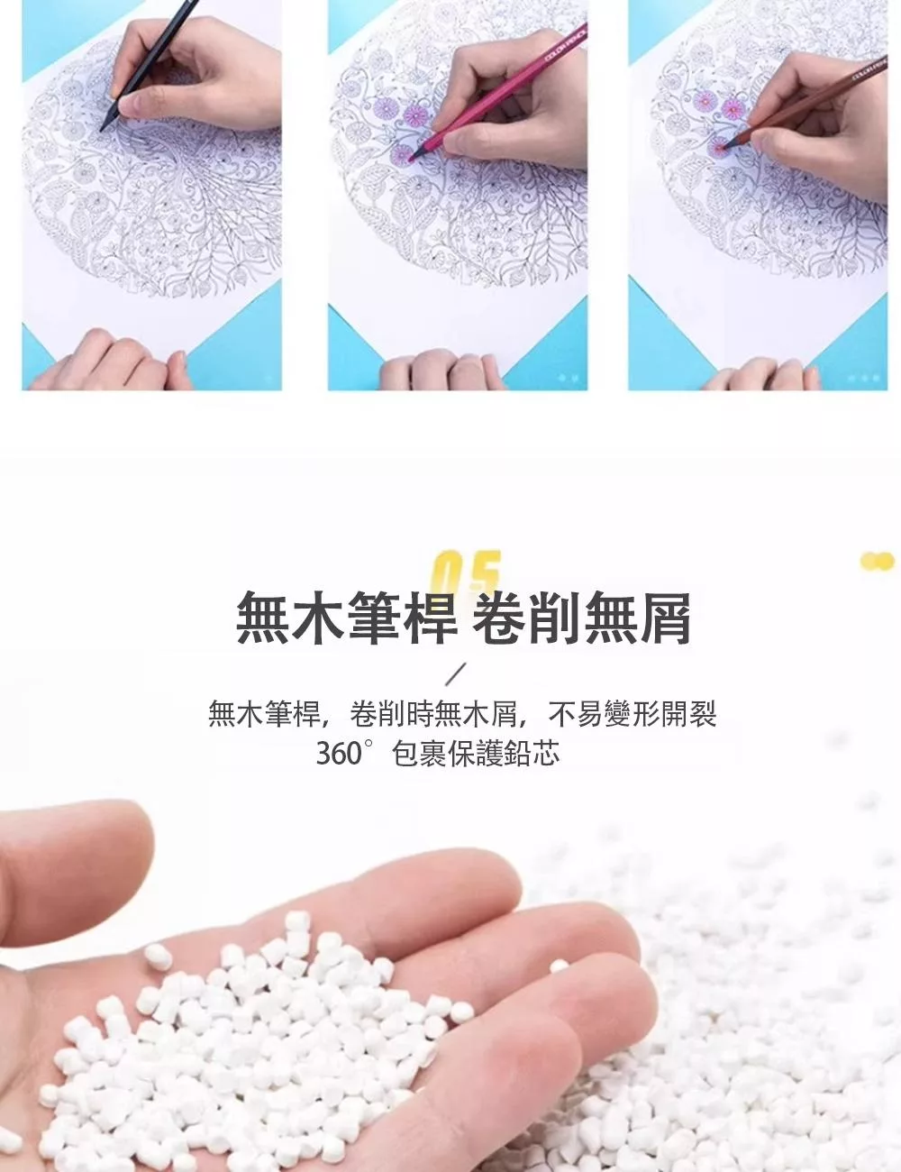 無木筆桿 卷削無屑:無木筆桿,卷削時無木屑,不易變形開裂,360°包裹保護鉛芯;