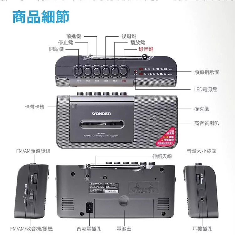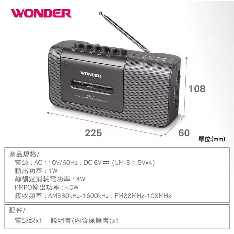 【WONDER 旺德】手提式收錄音機(WS-R17T)