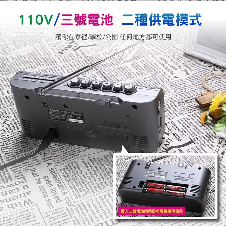 收音機接收頻率:AM530-1600KHz ; FM88-108MHz