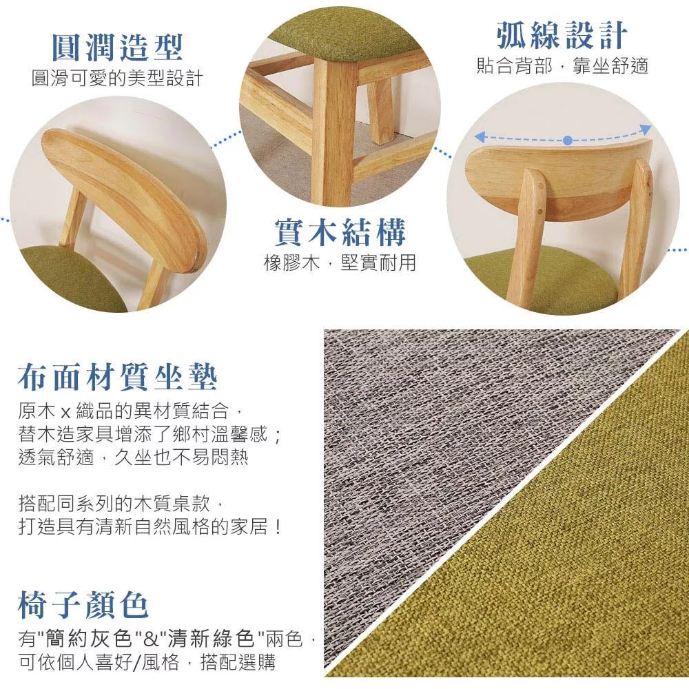 椅子材質:橡膠木、布面