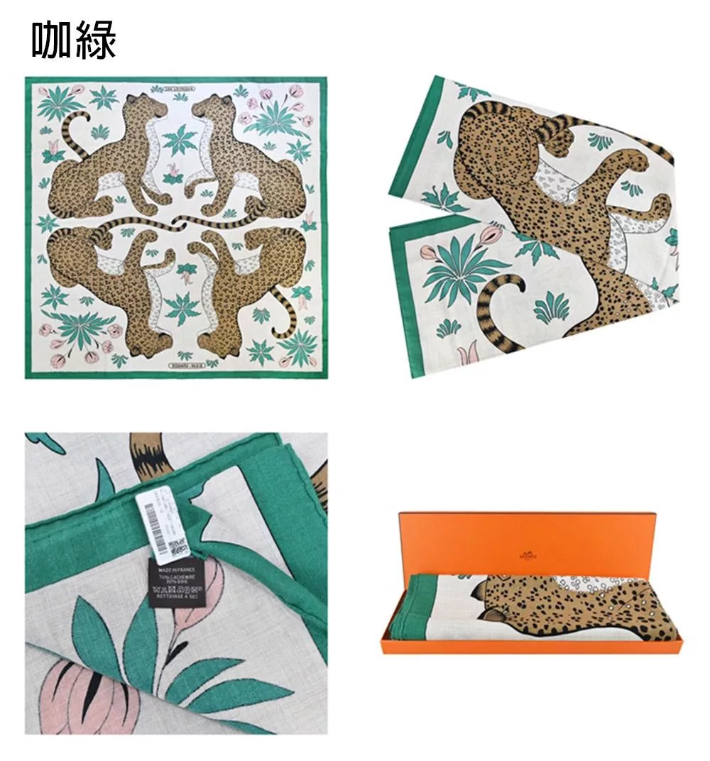 Hermes 愛馬仕 Equateur Twilly絲巾-奶油色/綠色/多色 奶油色/綠色/多色