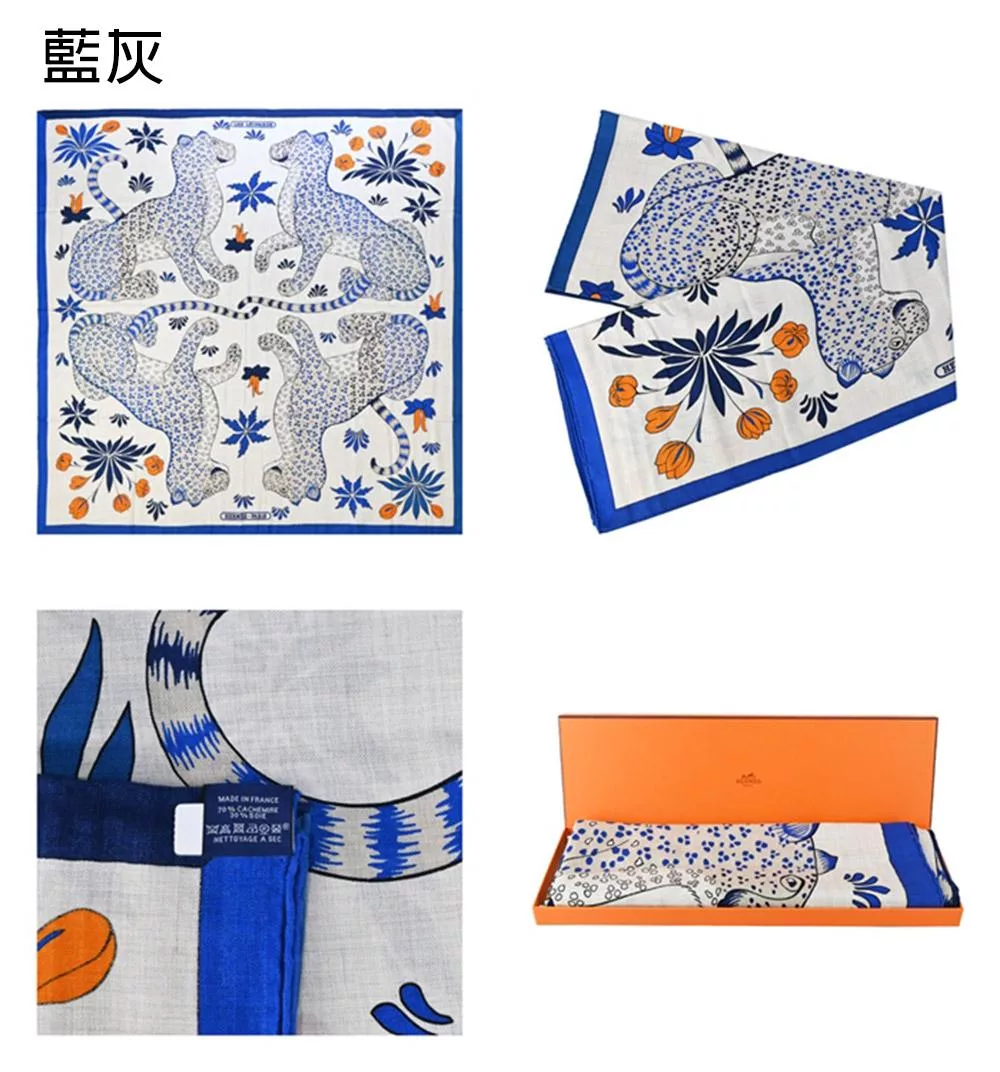 Hermes 愛馬仕Palefroi 140手工捲邊斜紋真絲大方巾/披肩- 淺海軍藍/雲紋灰/青銅色