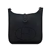 Hermes 愛馬仕 Evelyne 23cm H LOGO牛皮布款背帶斜/肩背包- 黑銀/K刻