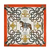Hermes 愛馬仕Grand Galop 90 手工捲邊斜紋真絲方巾- 奶油色/皮革色/綠色