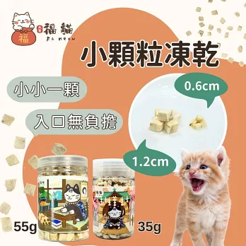 福貓迷你凍乾系列以「0.6cm 超小顆粒」為特色,為小嘴巴貓咪設計,好入口無負擔,讓每一口營養都能輕鬆享受。