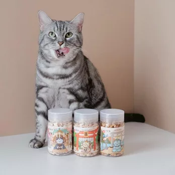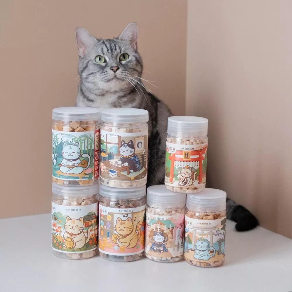 本系列包含三種祝福口味:「福貓、祿貓、壽貓」,三種寓意凍乾,將祝福濃縮於小巧一顆中,為貓主人添上祥瑞福氣。