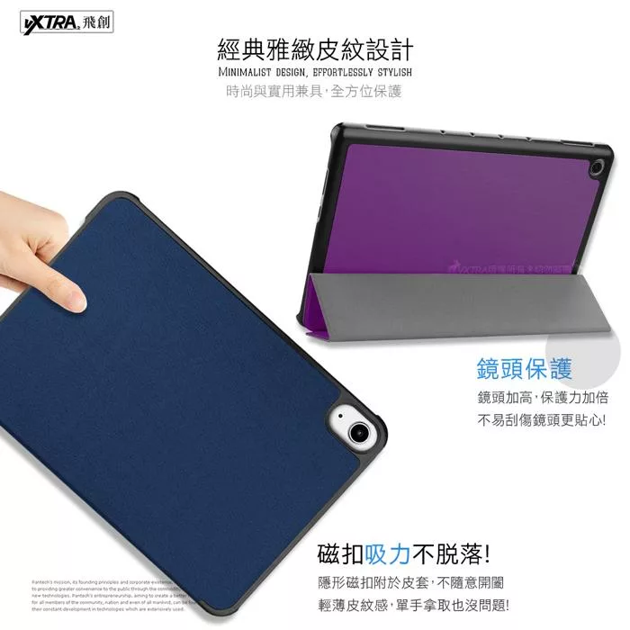 VXTRA 紅米Redmi Pad SE 8.7吋 經典皮紋三折皮套+9H鋼化玻璃貼(合購價) 摩爾藍
