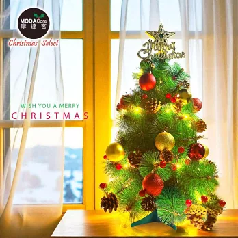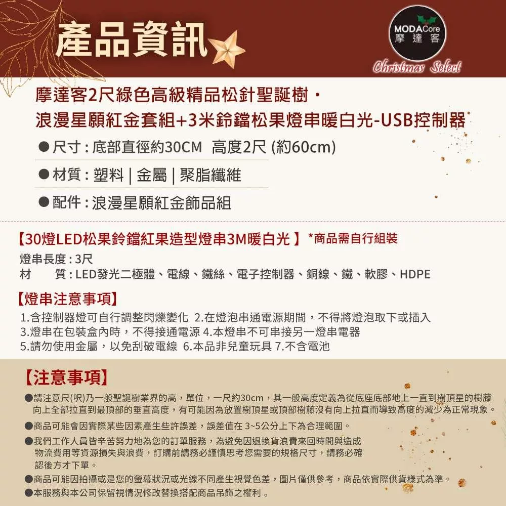 心可樂活-2尺60cm小美好套裝聖誕樹+3號童年快樂糖.果彩繪木片飾品組+LED暖白光20燈雪花燈串