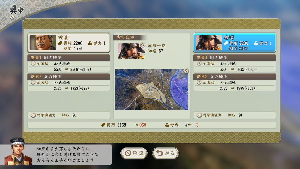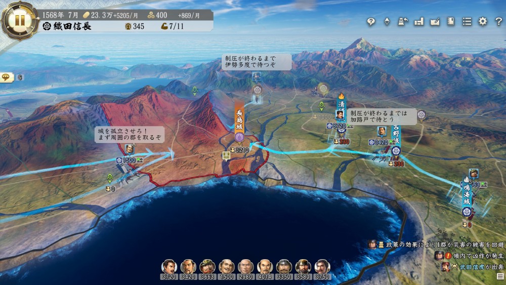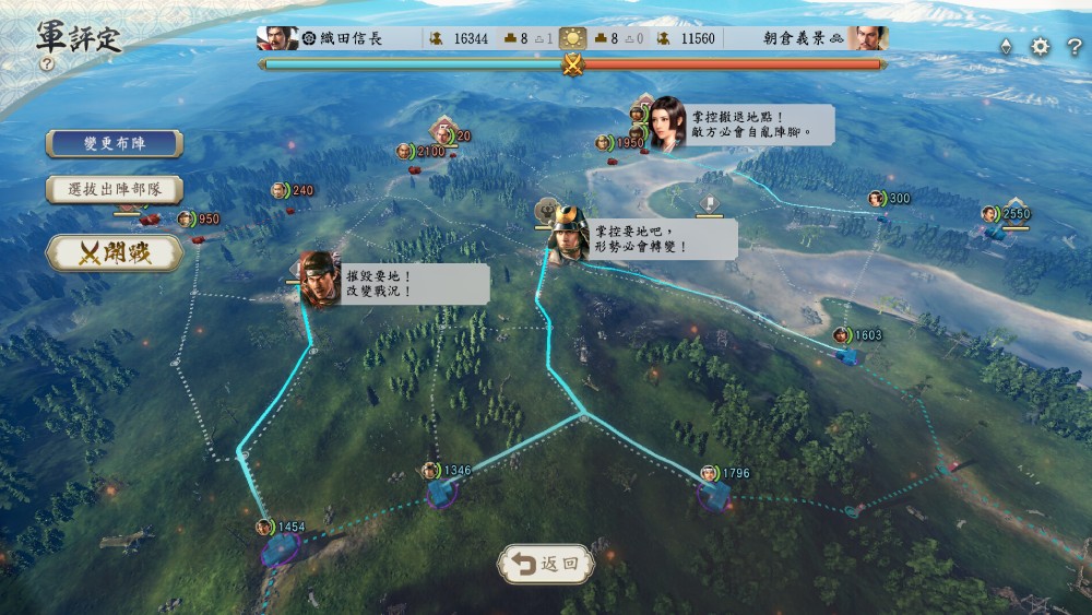 家臣將在會戰中獨自判斷,鎖定容易壓制的要地,或代替盟友交戰,讓連續出戰的盟友休息整頓。玩家需要時刻面對瞬息萬變的戰場,依據整體的戰況下達最合適的指令。