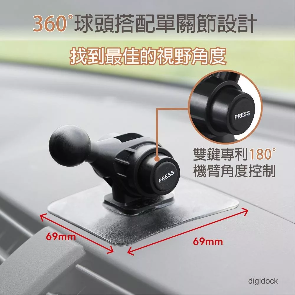 【digidock】MagSafe 強力粘貼式加大版單關節 磁吸式手機架 (MSC4-ST10S+)