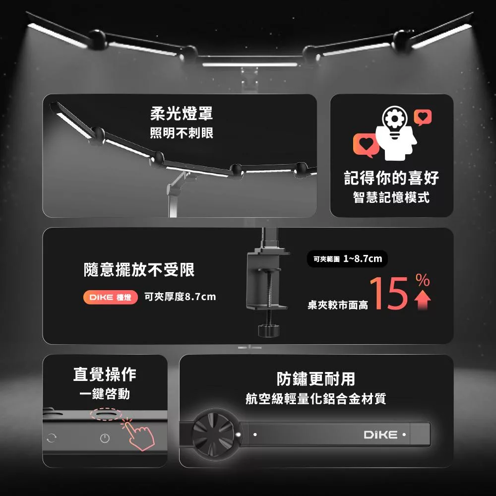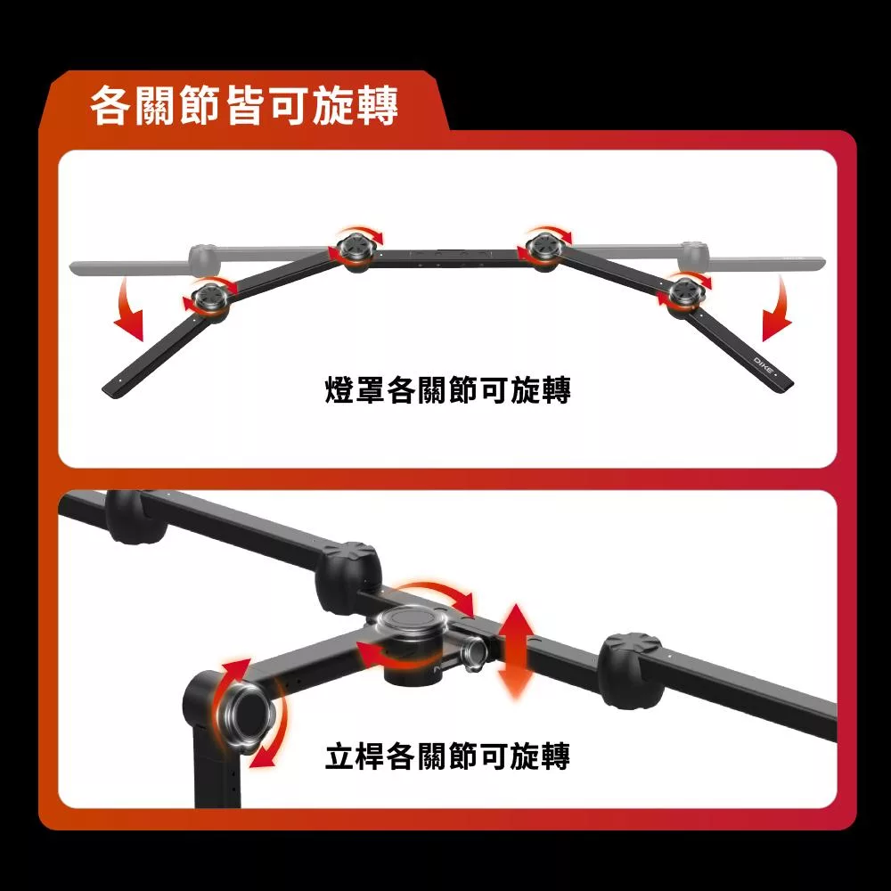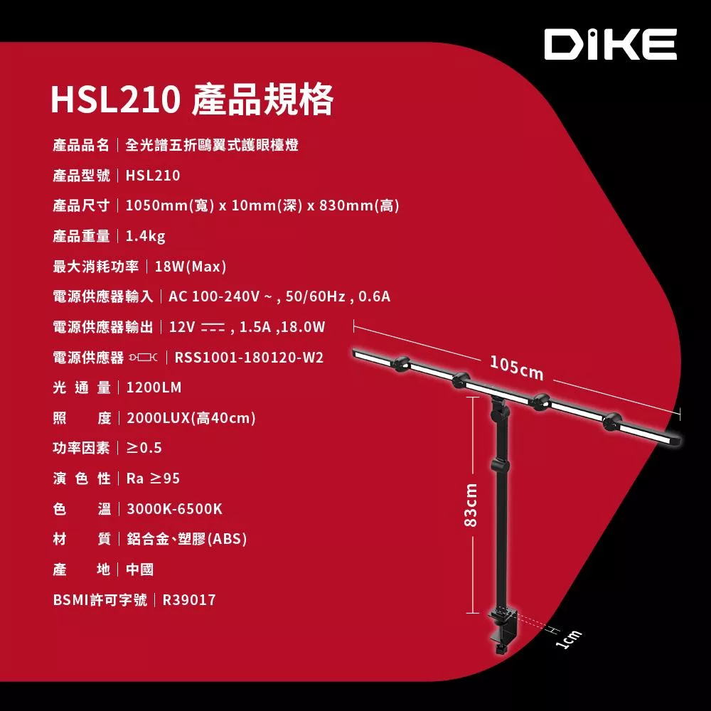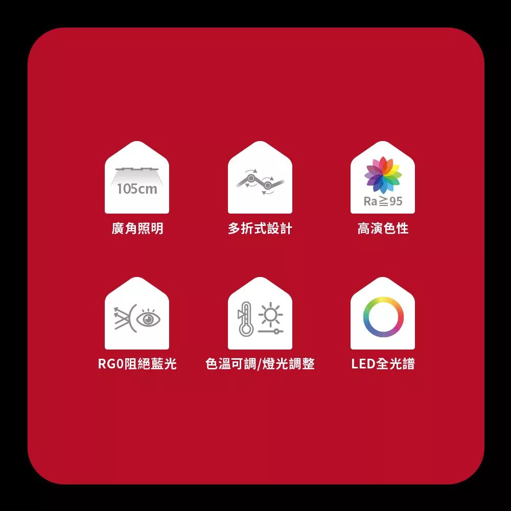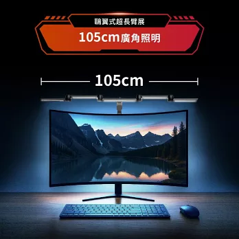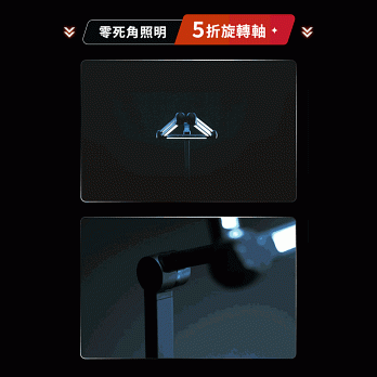 最大105cm臂展廣角照明,全方位無死角輕鬆照亮全桌區域,減少視野暗區讀寫更舒適