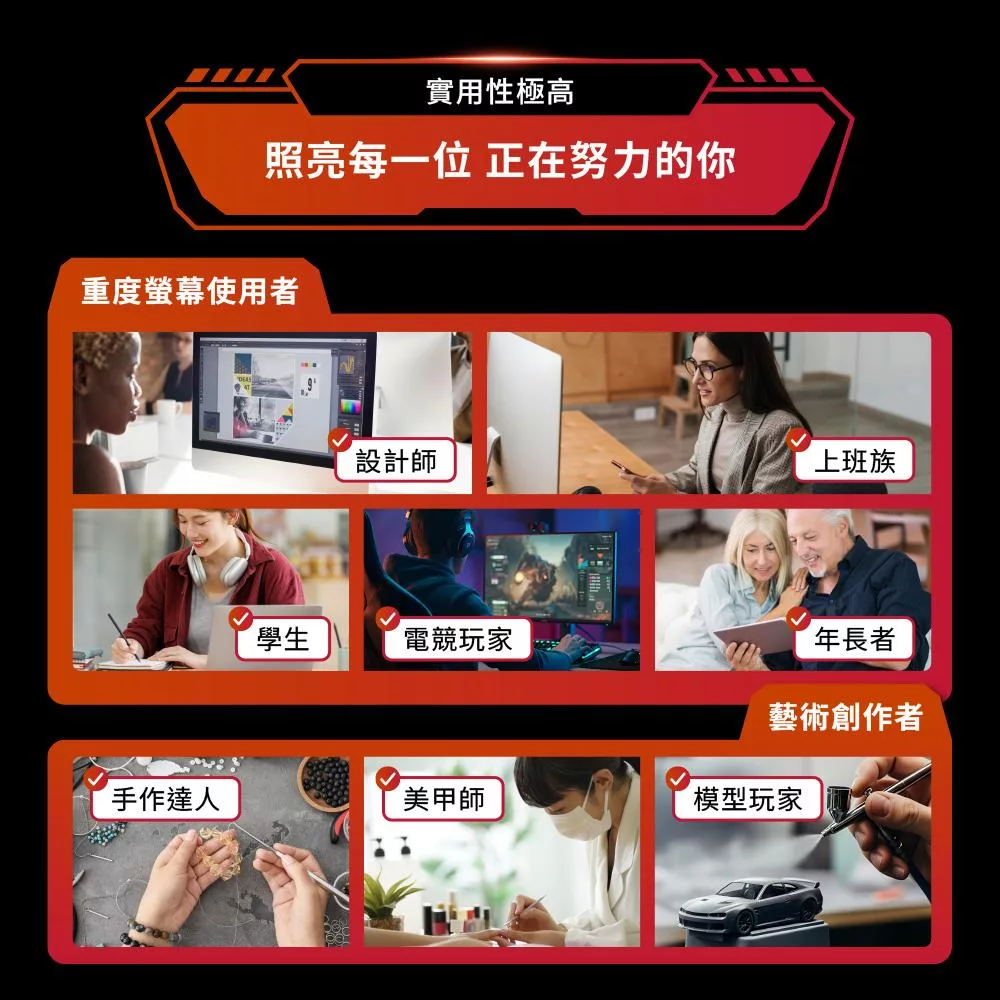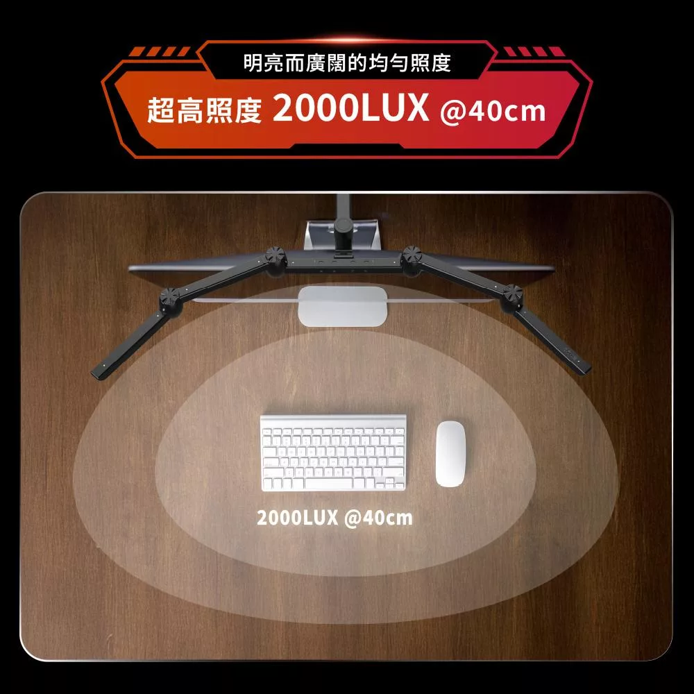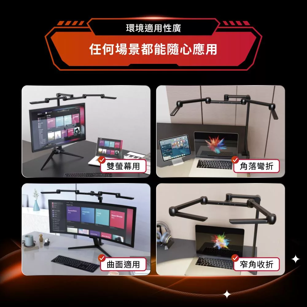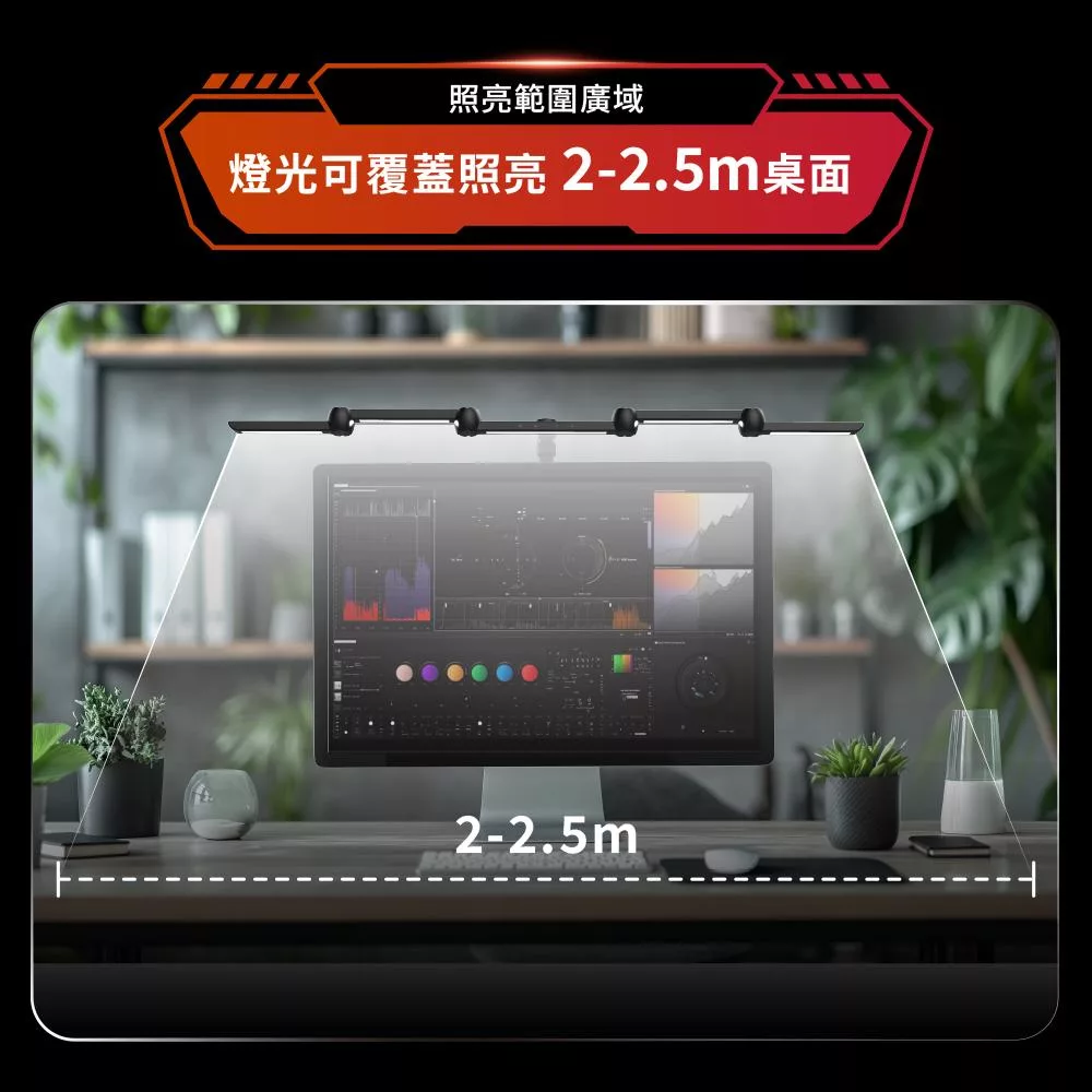 全域超廣角大範圍覆蓋照明,滿足雙螢幕、曲面寬螢幕,新時代科技生活