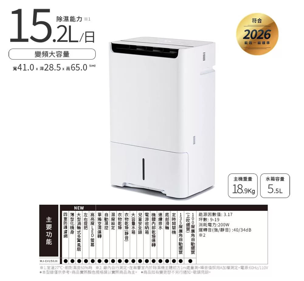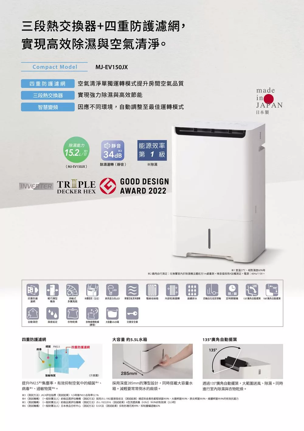 搭載智慧變頻及獨家三段熱交換器,兼具強力除濕與節能