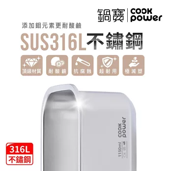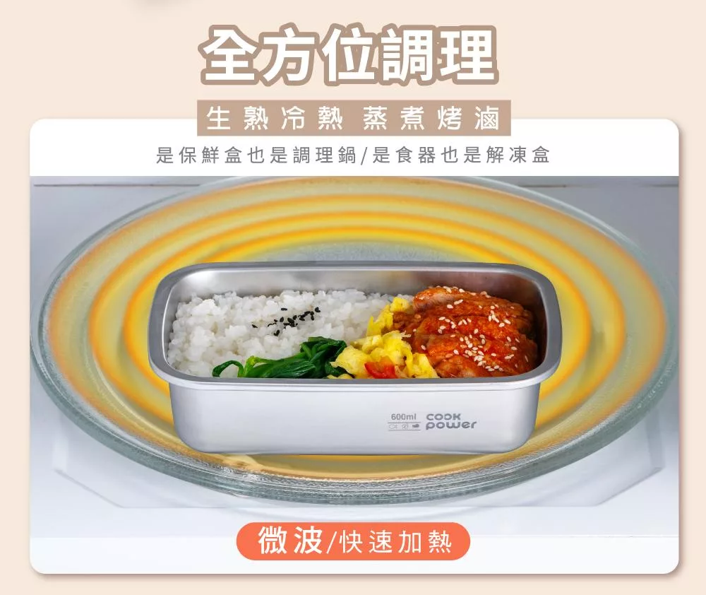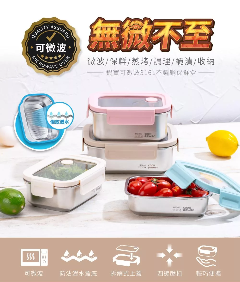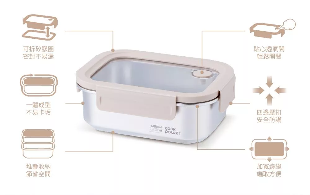 【CookPower 鍋寶】Snapiro可微波316L不鏽鋼保鮮盒1400ml(麥穗米)