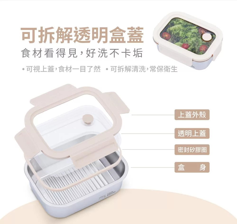 盒蓋/AS聚苯乙烯-丙烯腈(耐熱80℃)+PP聚丙烯(耐熱100℃)+矽膠圈(耐熱200℃)