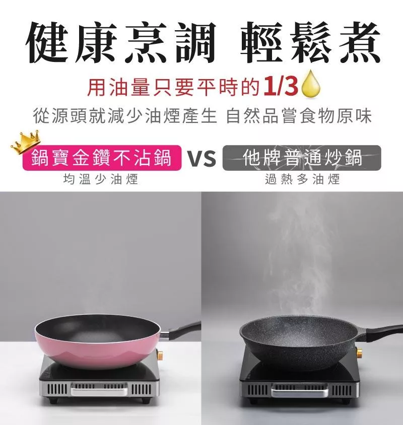 【CookPower 鍋寶】 金鑽不沾炒鍋三件組28CM-玫瑰金 (28炒+28蓋+鏟)