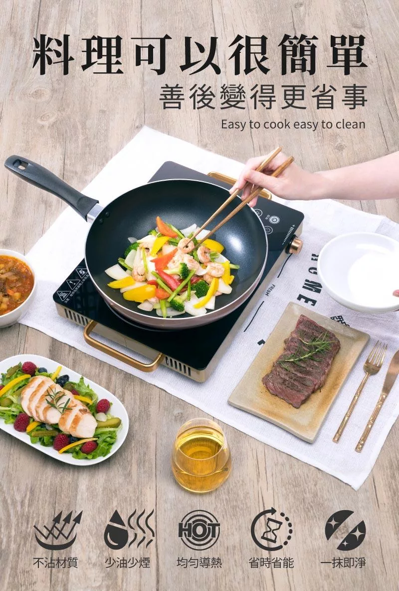 【CookPower 鍋寶】 金鑽不沾炒鍋三件組28CM-香檳金 (28炒+28蓋+鏟)
