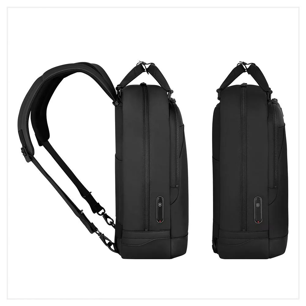 攜帶 Alox Nero 兩用袋讓您輕鬆自在地通勤。可選擇作為手提袋或背囊攜帶,不使用時可以將肩帶安全整齊地收起。配備精心設計的內部隔層、電子用品保護空間和內置鑰匙扣,輕鬆拿取、收納和保護您的必需品。瑞士設計結合優質工藝,採用堅固耐用的 ROBIC® 斜紋尼龍製造,飾以真皮細節,安心自在地度過每一天。