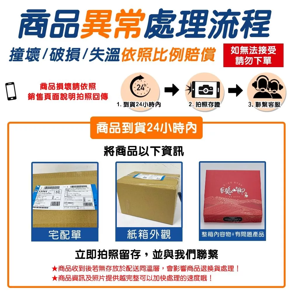 1.料理食品為短效期商品,皆為接獲訂單後製作,若須指定到貨請於住址欄後方備註希望收貨的日期,以免商品已排入製作或配送。經宅配送出後請勿任意更改訂單寄送資料,以利商品如期出貨。【轉廠商出貨商品,出貨日期: 可接受指定到貨日期,恕不接受指定配送時段】