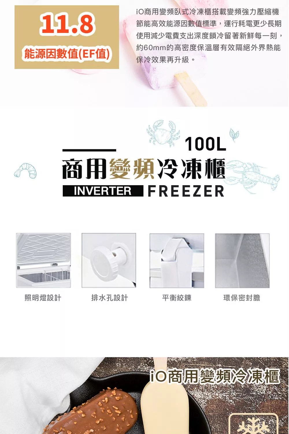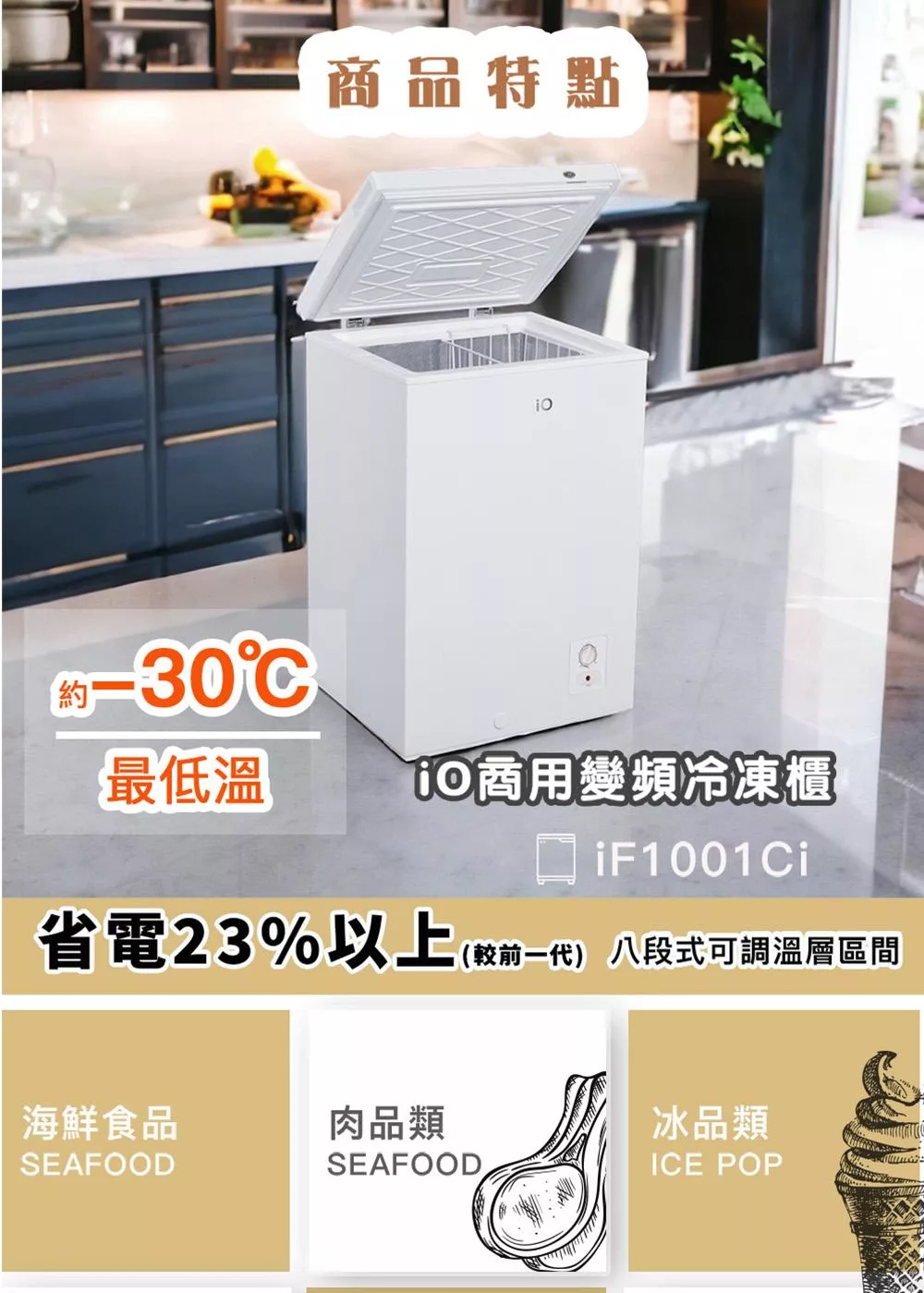 iO變頻商用臥式100L冷凍櫃(iF-1001Ci)