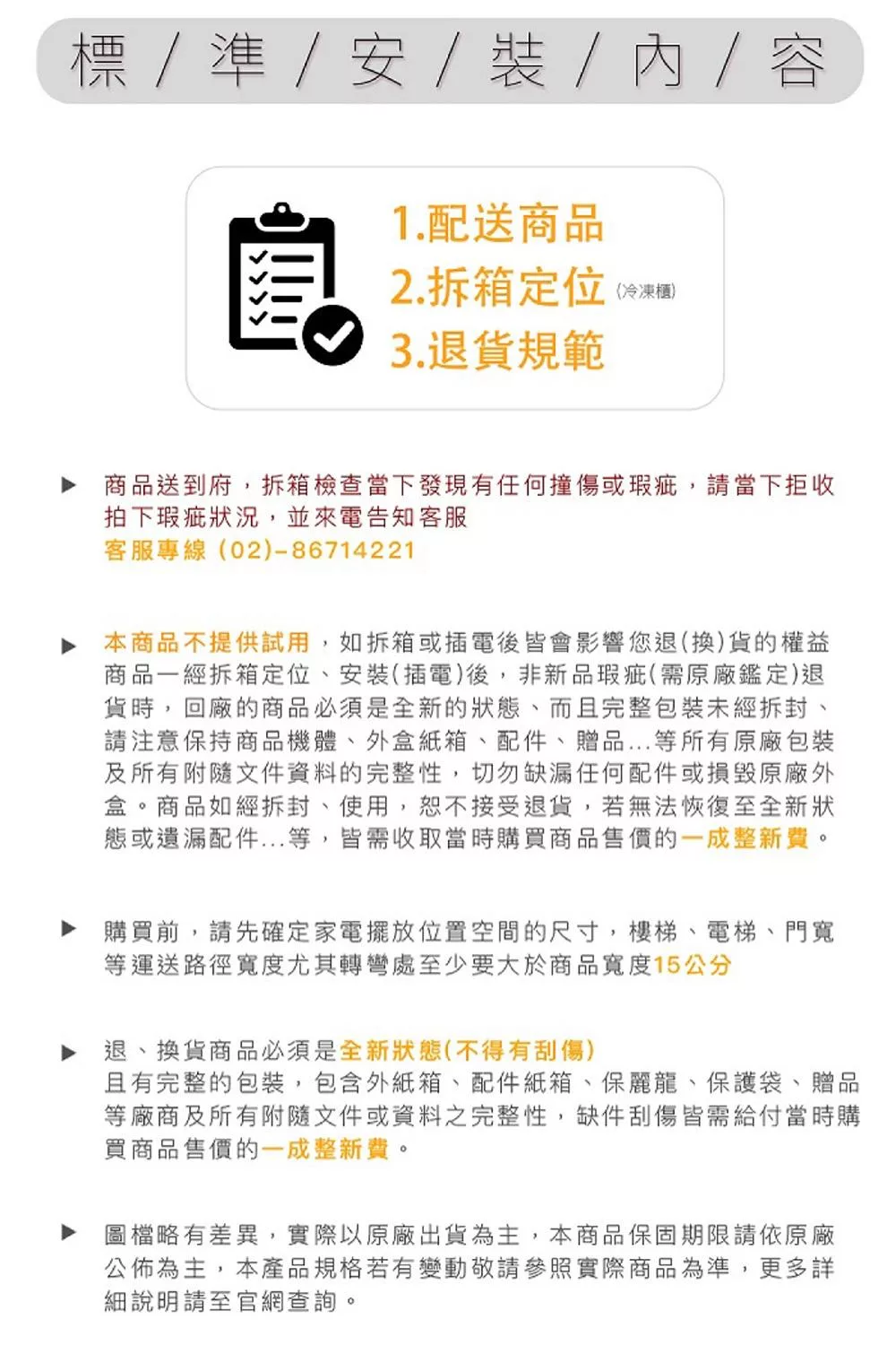 當您於此頁面下單表示您了解並同意下述規範,請注意!