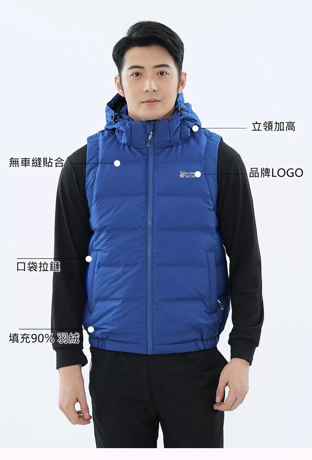 【遊遍天下】男女款防風防潑水90%羽絨立領背心(GV22004) M 藍色