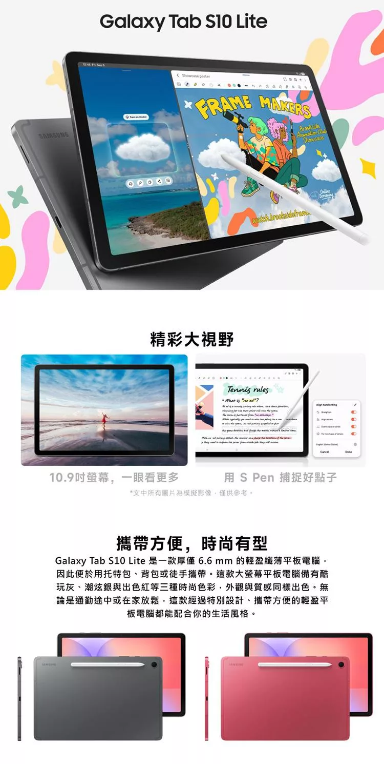 ★贈多樣好禮★Samsung 三星 Galaxy Tab S10 Lite 6G/128G 5G 10.9吋平板電腦(X406) 八核心處理器 出色紅