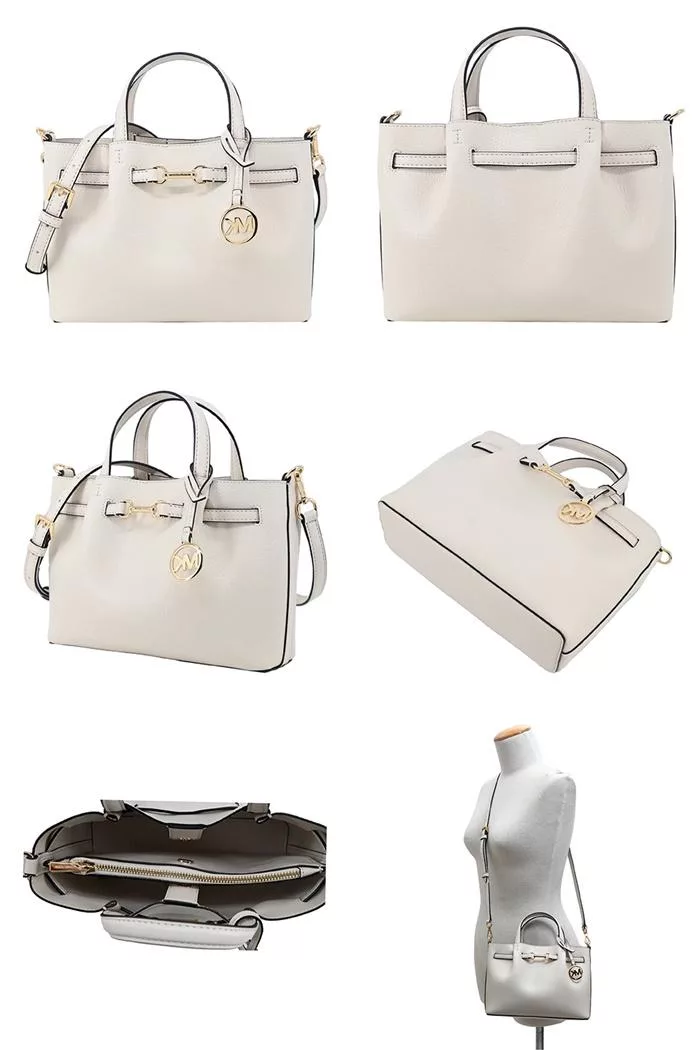 MICHAEL KORS Carson皮革斜背/手提兩用包(小)- 米白